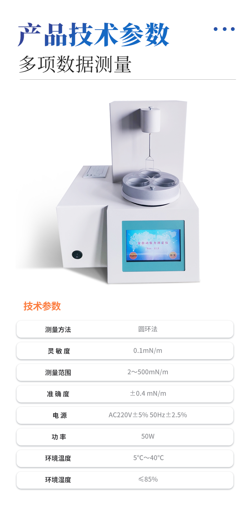 儀器特點★ 在正常環(huán)境溫度下,純水標定、油樣測試整個過程溫度控制在25±1℃?!?溫度控制采用PID自整定技術(shù)★ 樣品分析效率高,可同時放三個樣品★ 使用不同測量環(huán)儀器自動修正參數(shù)★ 自動打印試驗結(jié)果,動態(tài)張力曲線顯示★儀器采用等一點標定,簡單方便,保證測量精度;★高清晰彩色觸摸