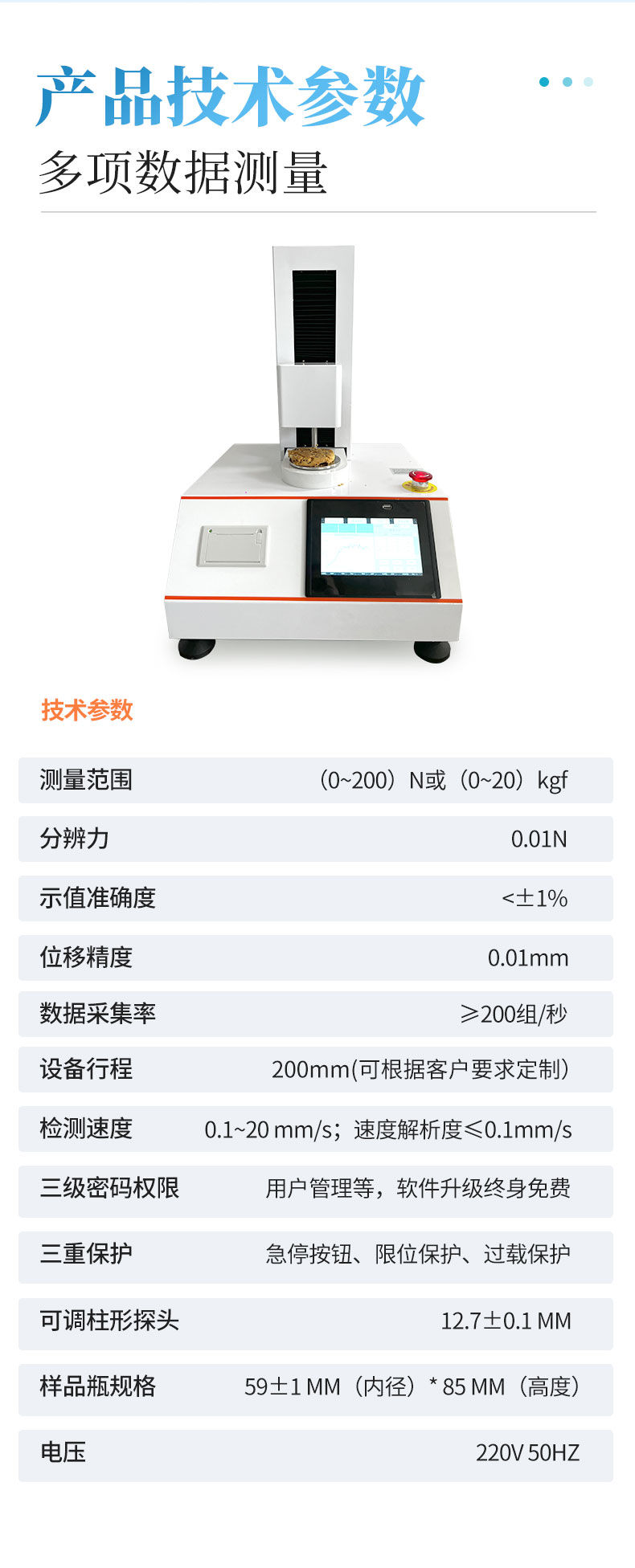 配置:主機(jī)、探頭轉(zhuǎn)換器、說(shuō)明書、凝膠強(qiáng)度測(cè)試**輔具、彈性測(cè)試**輔具、備品包。