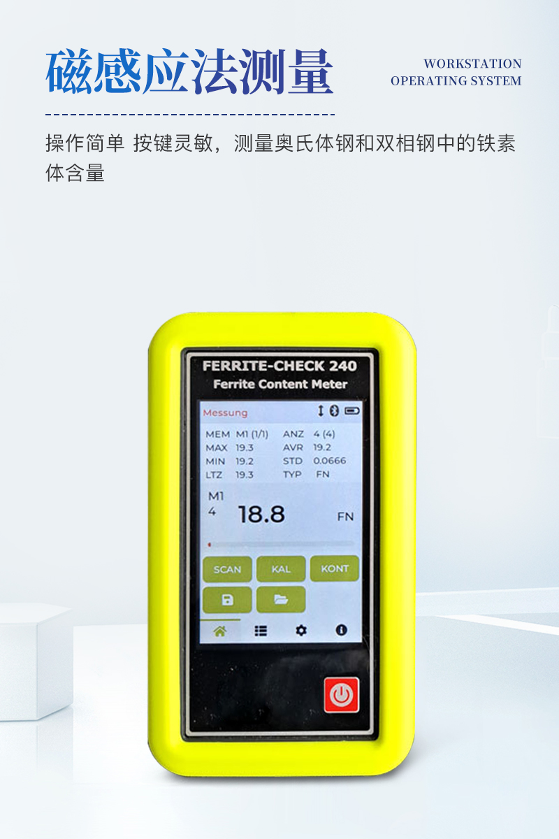 FERRITE-CHECK 240鐵素體含量檢測儀采用分體式的設(shè)計(jì),使用方便,儀器符合Basel標(biāo)準(zhǔn)DIN EN ISO 8249,使用磁感應(yīng)法測量奧氏體鋼和雙相鋼中的鐵素體含量。