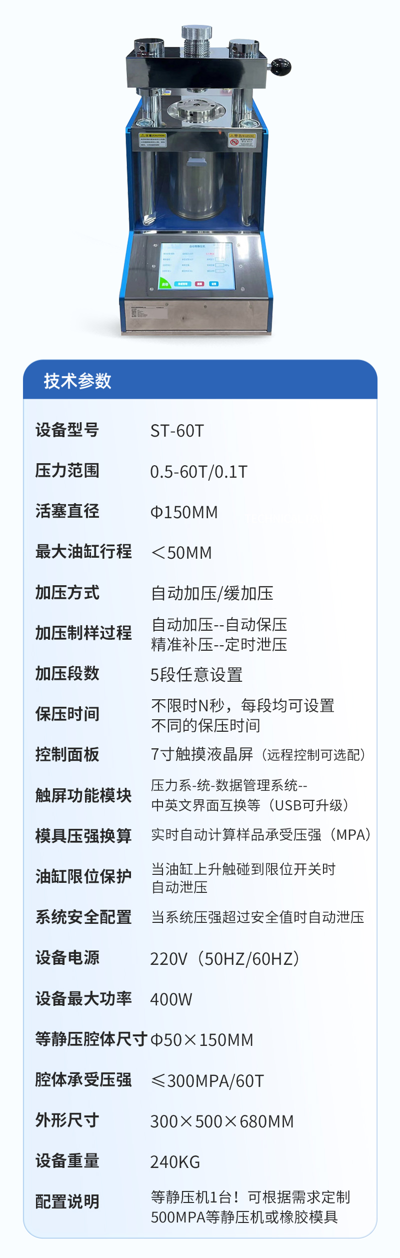 | 配置說明 | 等靜壓機(jī)1臺!可根據(jù)需求定制500MPa等靜壓機(jī)或橡膠模具 |