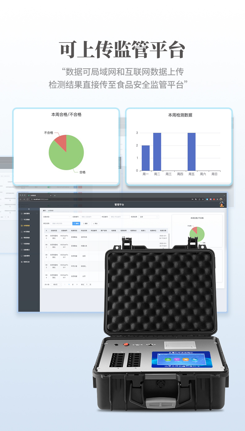 4、一體化便攜式快檢設(shè)備,滿足現(xiàn)場(chǎng)及流動(dòng)檢測(cè)使用需求。