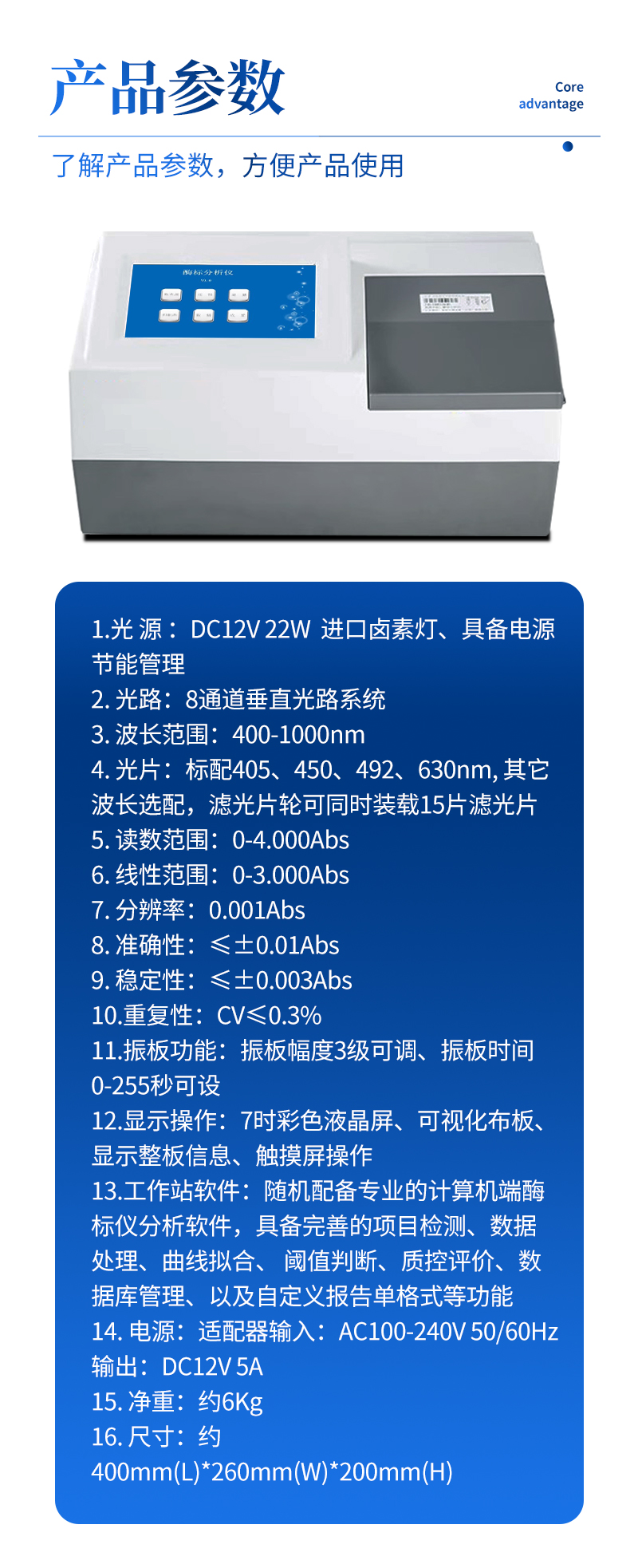 5. 讀數(shù)范圍:0-4.000Abs